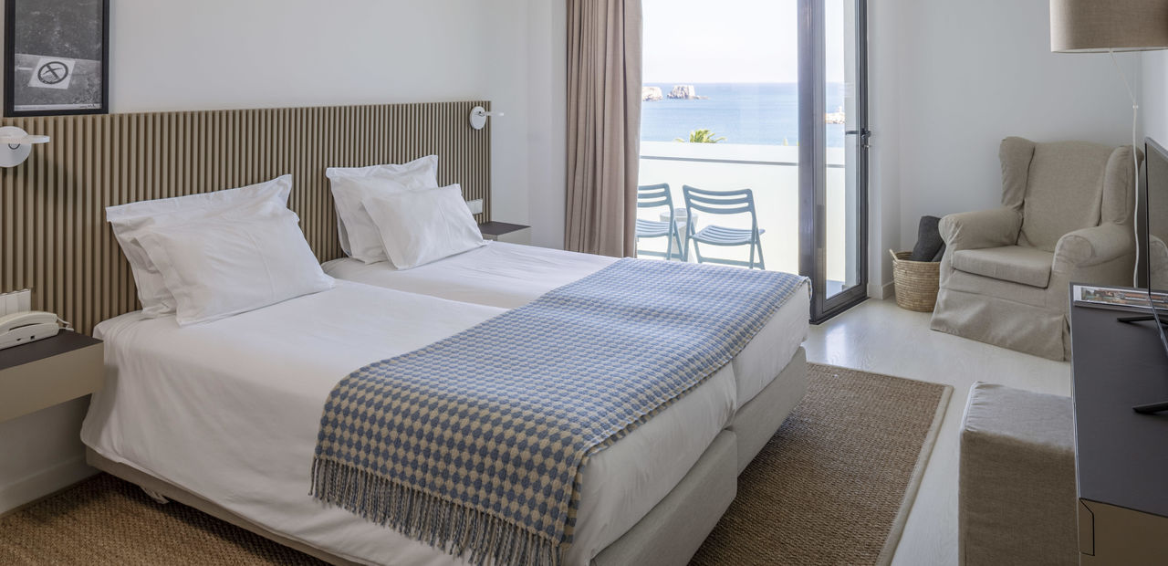 Twin or double occupancy. Magnificent ocean front view of the ocean, the Baleeira harbour or the Martinhal islands. Equipped with air-conditioning, LCD television, minibar, telephone and memmo bathroom amenities.